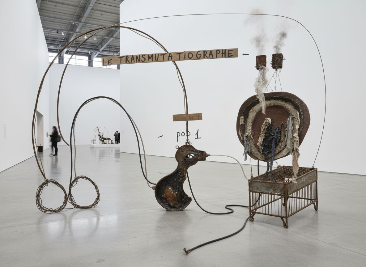 Sculpture n°68 — Vas Johnny, baise et Mugwump éclaté + figures transfinies. Dessins matriciels, 1996 — visualisation volumétrique du dessin, 2025