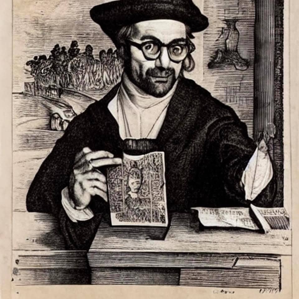 Selfie(s) de Jean-Luc Godard gravé(s) au laser par Albrecht Dürer