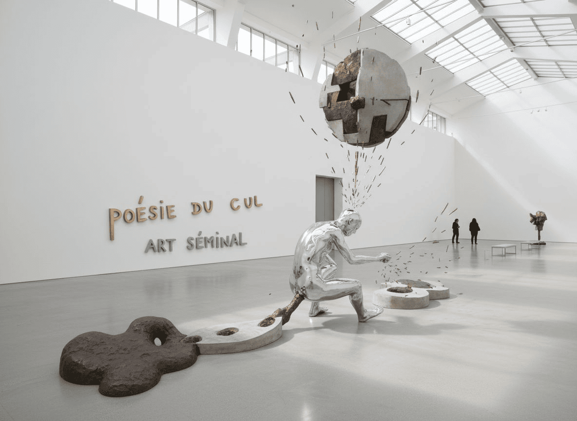 Sculpture n°68 — Vas Johnny, baise et Mugwump éclaté + figures transfinies. Dessins matriciels, 1996 — visualisation volumétrique du dessin, 2025